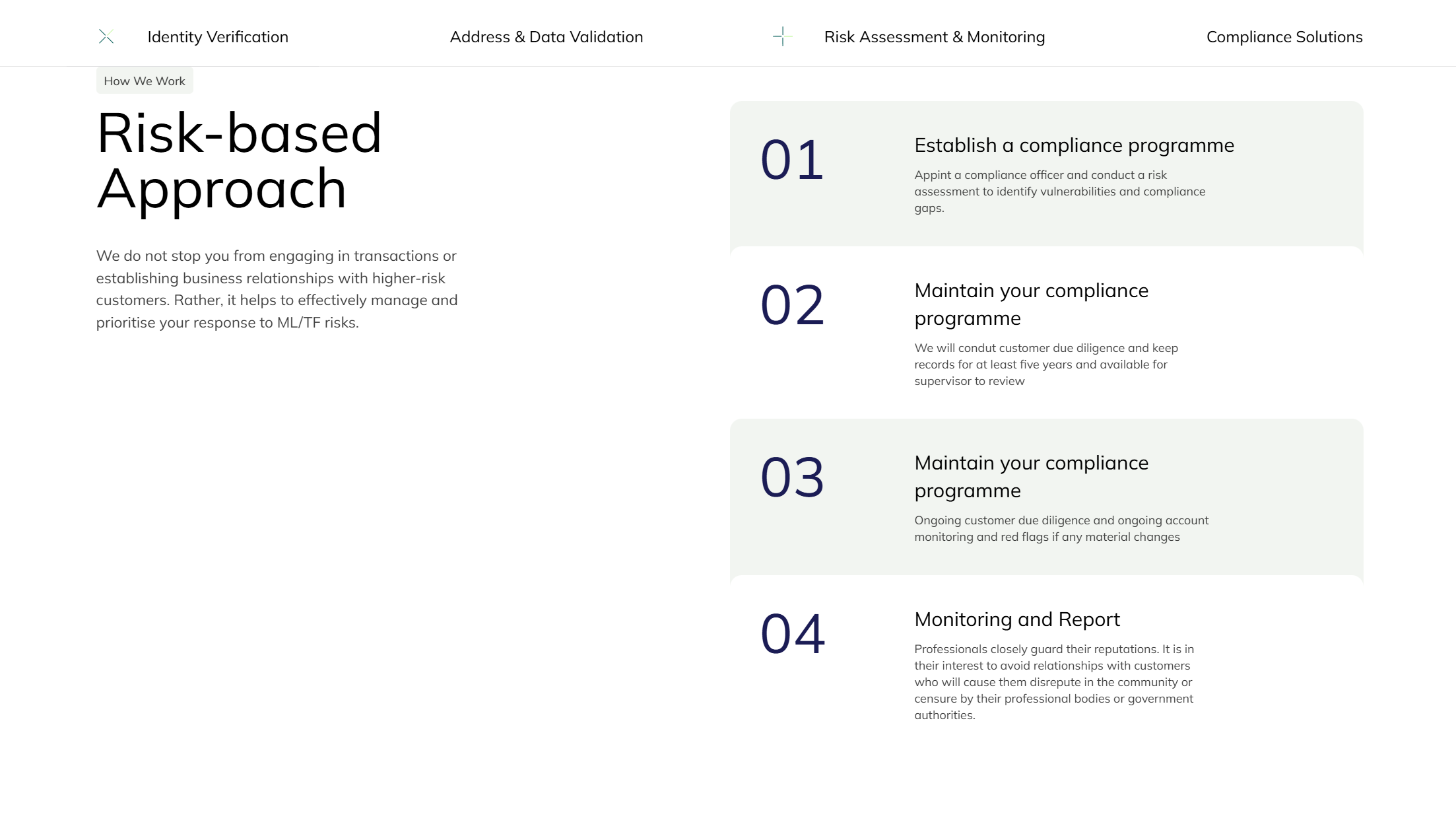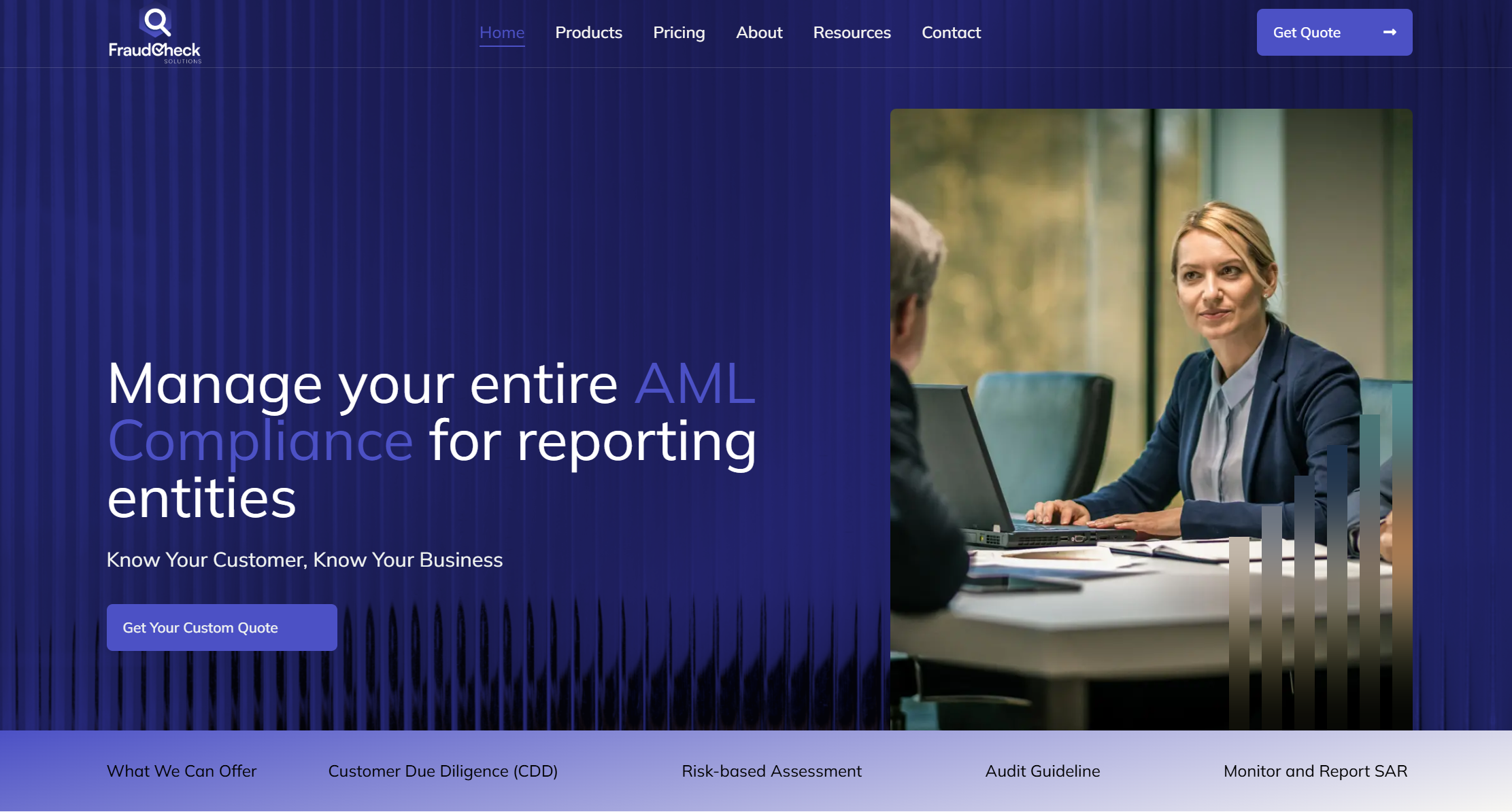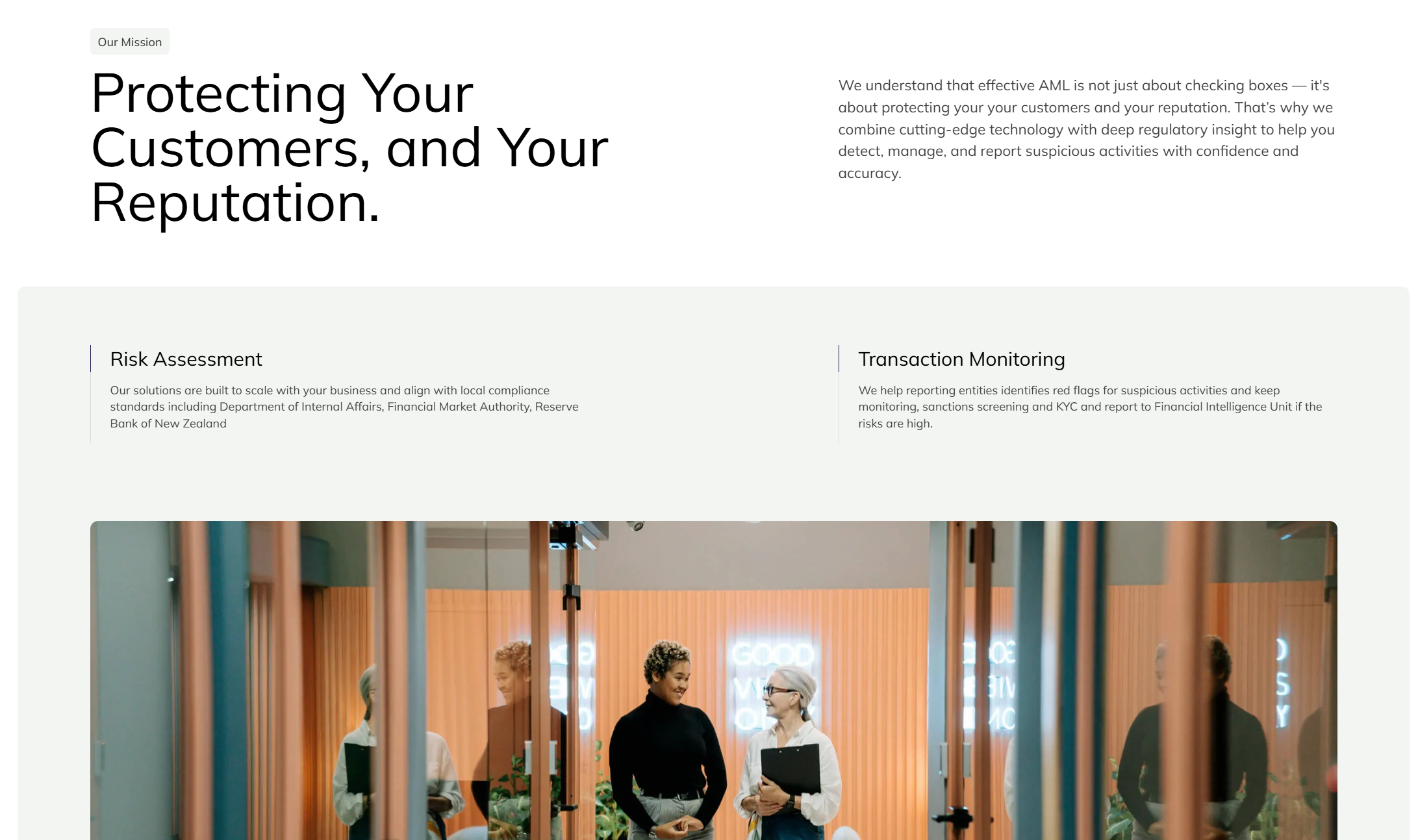 FraudCheck Solutions 网站展示了公司的使命:保护客户与企业声誉。公司采用基于风险的合规方法,不阻止客户与高风险客户进行交易或合作,而是帮助他们有效识别、管理并优先应对洗钱与恐怖融资风险。服务范围包括身份验证、地址与数据验证、风险评估与监控、合规解决方案、客户尽职调查(CDD)、审计指南及可疑活动报告(SAR)的监控与报告。FraudCheck Solutions 将前沿技术与深厚的监管洞察相结合,帮助企业自信、准确地检测、管理与报告可疑活动,确保符合新西兰内政部、金融市场管理局及储备银行的本地合规标准。